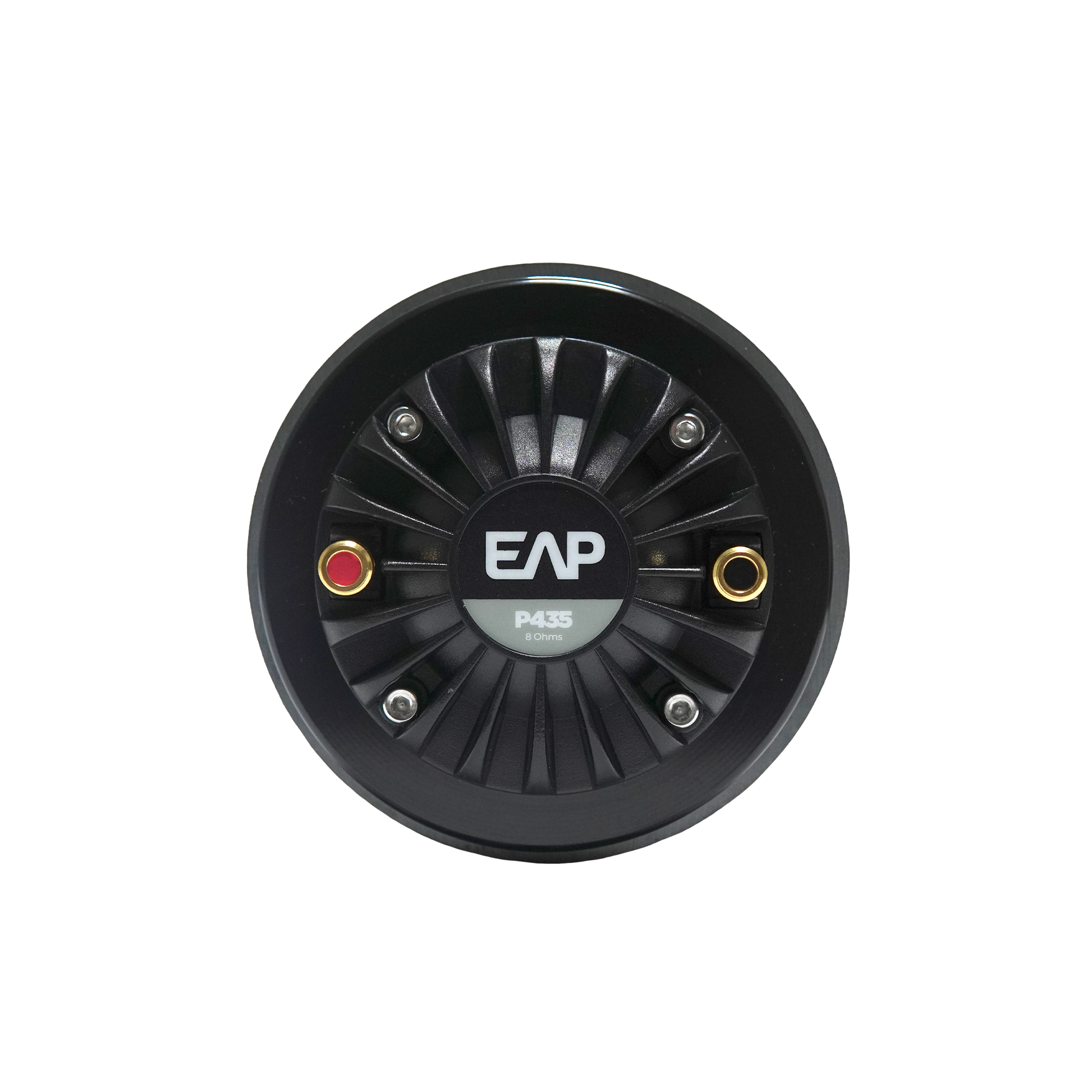 O Driver EAP P435 foi especialmente projetado para reproduzir médias e altas frequências, sendo ideal para sistemas de áudio que exigem alta qualidade, som aprimorado e durabilidade. Equipado com o exclusivo diafragma de domo em Poliimida Perolizada PearlDome®, oferece alta sensibilidade, baixa distorção e excelente confiabilidade, resultando em timbres precisos, sem os indesejáveis sons metálicos agudos. Seu conjunto magnético poderoso, desenvolvido com o software FEM (Método de Elementos Finitos), atinge 18.000 Gauss (1,8T). Fabricado com extrema precisão, assegura qualidade e confiança. A bobina móvel, feita de fio CCAR (Copper Clad Aluminum Ribbon) e enrolada em Kapton®, proporciona estabilidade e resistência térmica. Acabamento em pintura KTL (eletrodeposição catódica) garante excelente proteção anticorrosiva, superando 1.000 horas em testes de salt spray.